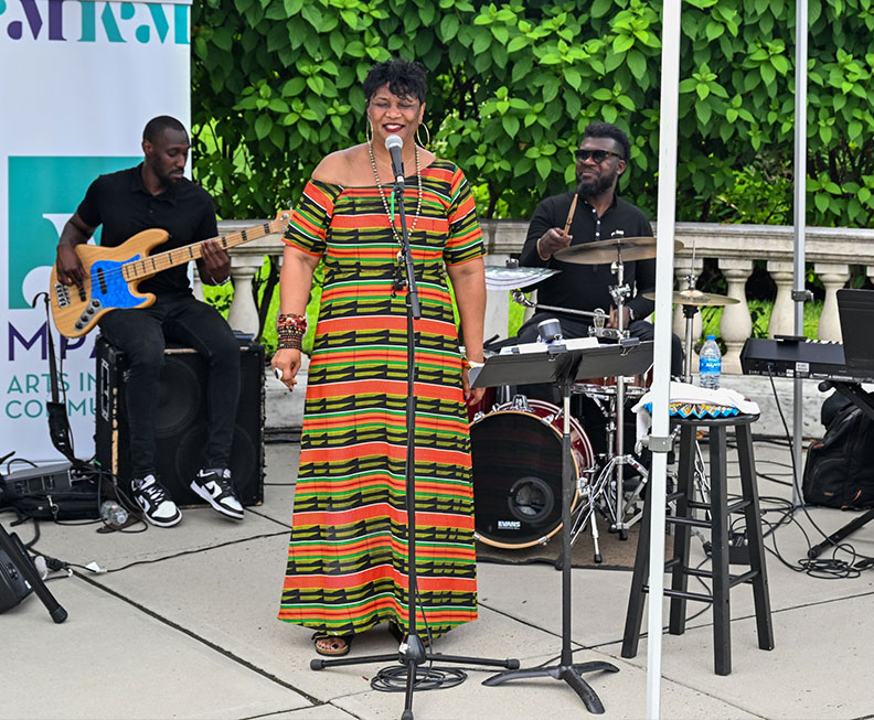 Juneteenth Arts Celebration 2025 kicked off with Mayo Performing Art Center’s outdoor concert featuring Lynette Sheard and the Lawrence Allen Trio. Lynette’s performances have been acknowledged in numerous publications including, The New York Times, Broadway World, and The Star-Ledger, which proclaimed that “Her voice reaches deep into one’s soul and finds a soft spot”. Her interactive performance showcased popular freedom songs that demonstrate the joy and hope of the African-American experience.