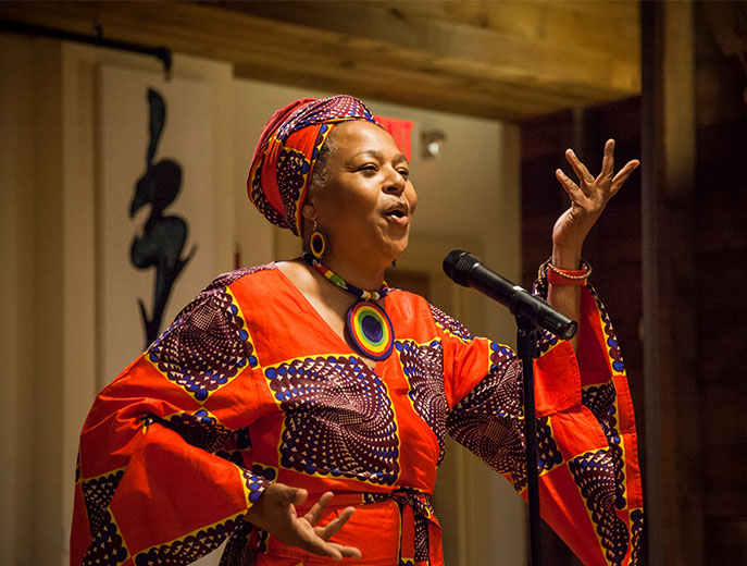Renowned storyteller Queen Nur presents a lively collection of on-site and virtual shows for all ages using stories, dance and music in a highly interactive performance. The tales include such favorites as Giraffes Can’t Dance and Anansi the Greedy Spider, stories that teach character development while the interaction promotes confidence. “Folktale Fun” for grades K-6, celebrates African American folklore using song and dance, accompanied by African instruments. “The Bully Free Zone” for grades 3-8, uses folk tales, fables and hip-hop to inspire kids into accepting each other’s differences. With story, poetry, call and response, song and drum rhythms “They Put A Stamp On It – Primary” for grades 3-8 shares the lives and accomplishments of African-Americans who have been honored by being placed on a Unites States stamp including: Dr. George Washington Carver, Benjamin Banneker, Charles Drew, Madame C.J. Walker, Jan E. Matzeliger, Julian Percy, John Henry, Harriet Tubman, Jackie Robinson, Little Rock Nine, Rosa Parks and Martin Luther King, Jr. “They Put a Stamp On It – Secondary” for grades 9-12 includes: Mary McCleod Bethune, Anna Julian Cooper, Fannie Lou Hamer, Gwendolyn Brooks, Robert Hayden, Zora Neale Hurston, Greensboro Lunch Counter Sit In, Freedom Riders, Marion Anderson, Kwanzaa. Queen Nur is also available for residencies and workshops.