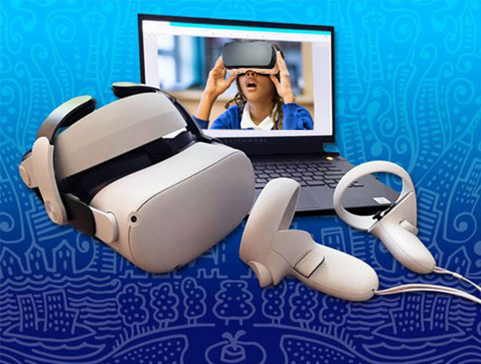 Teaching artist Dan Fenelon has developed a series of workshops to teach Virtual Reality development to middle and high school students. His program is designed to work with 5 students at a time to learn Unity, Tiltbrush, Gravity Sketch and other 3d programs to create assets and environments in Virtual Reality. Students will learn the basics of constructing VR worlds and creating VR camera rigs. Explore the world of Virtual Reality and see the potential for what is to come.